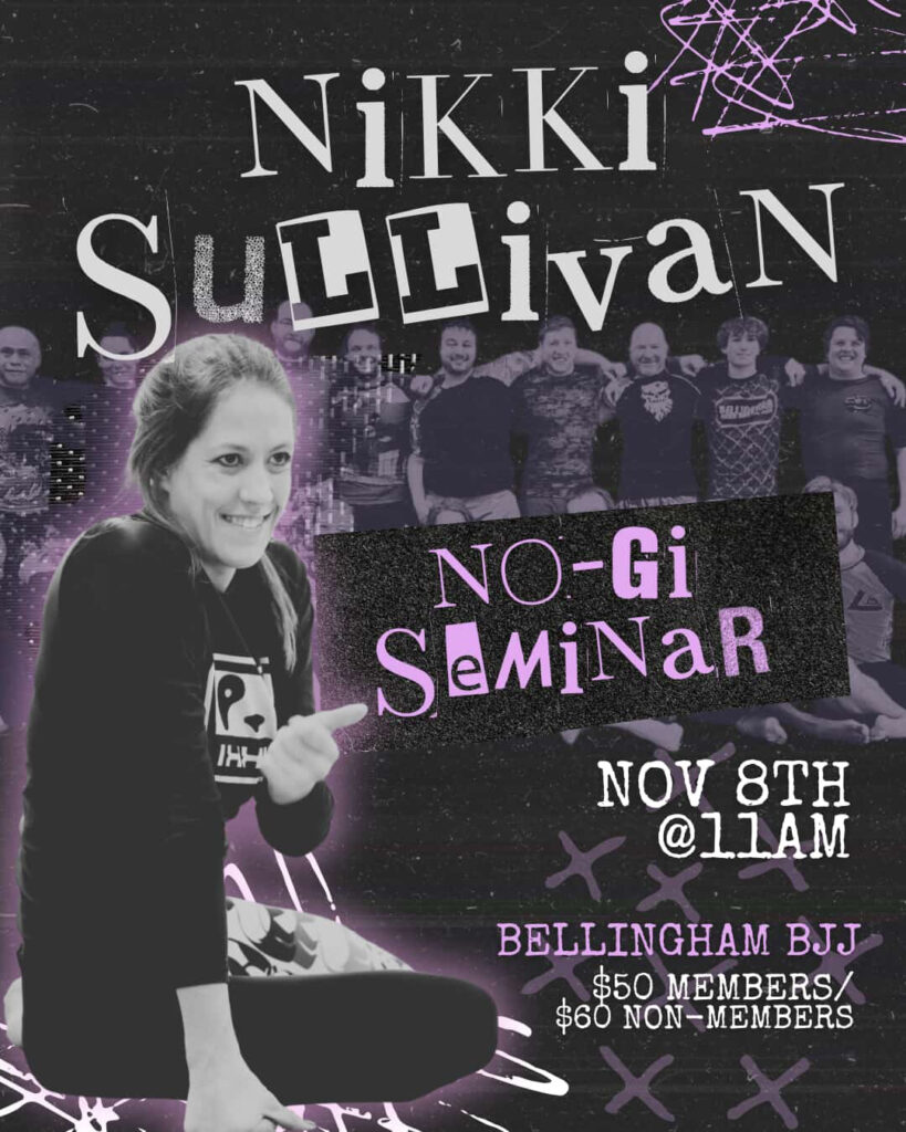 The great Nikki Sullivan returns to Bellingham BJJ on Nov. 8, 2025 for a nogi seminar at 11 a.m.!